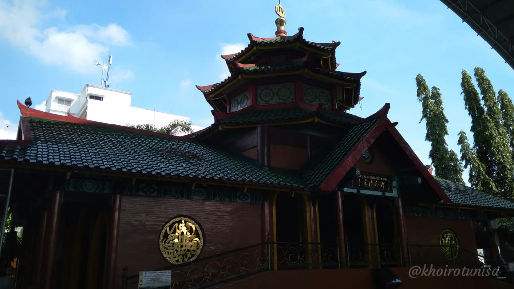مبنية على مساحة ٣۰۷۰ م 2(M^2) من الأرض باسم ملكية H. M. Trisnoadi Tantiono و H.M.Y. BambangSujanto. ثم أدلى ببيان أن الأرض مملوكة لمؤسسة الحاج محمد تشنغ هو. تبلغ المساحة الكلية للمسجد ۱۱ × ۱٢ مترًا ، ويبلغ قياس المبنى الرئيسي ٩ ×۱۱ أمتار. لكل جزء من مبنى المسجد معنى خاص به ، على سبيل المثال ، يشير المبنى الرئيسي الذي تبلغ مساحته ۱۱مترًا إلى أن الكعبة الأولى التي بناها النبي إبراهيم يبلغ طولها ۱۱ مترًا ، في حين يشير عرض ٩ أمتار في المبنى الرئيسي إلى وجود واليسونجو(Wali